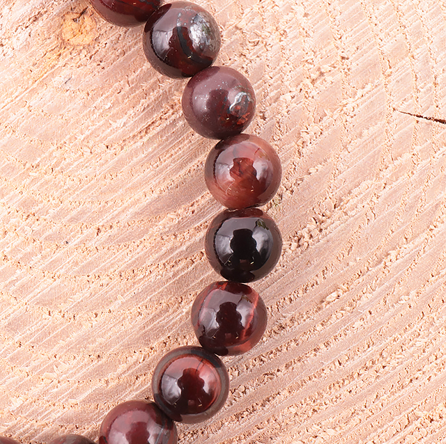 Composé de perles naturelles d’Œil de Taureau de 8 mm, qualité A, aux reflets bruns et rougeâtres profonds. Pierre de force, de protection et d’ancrage, l’Œil de Taureau est reconnue pour repousser les énergies négatives et renforcer le courage, la détermination et la confiance en soi.